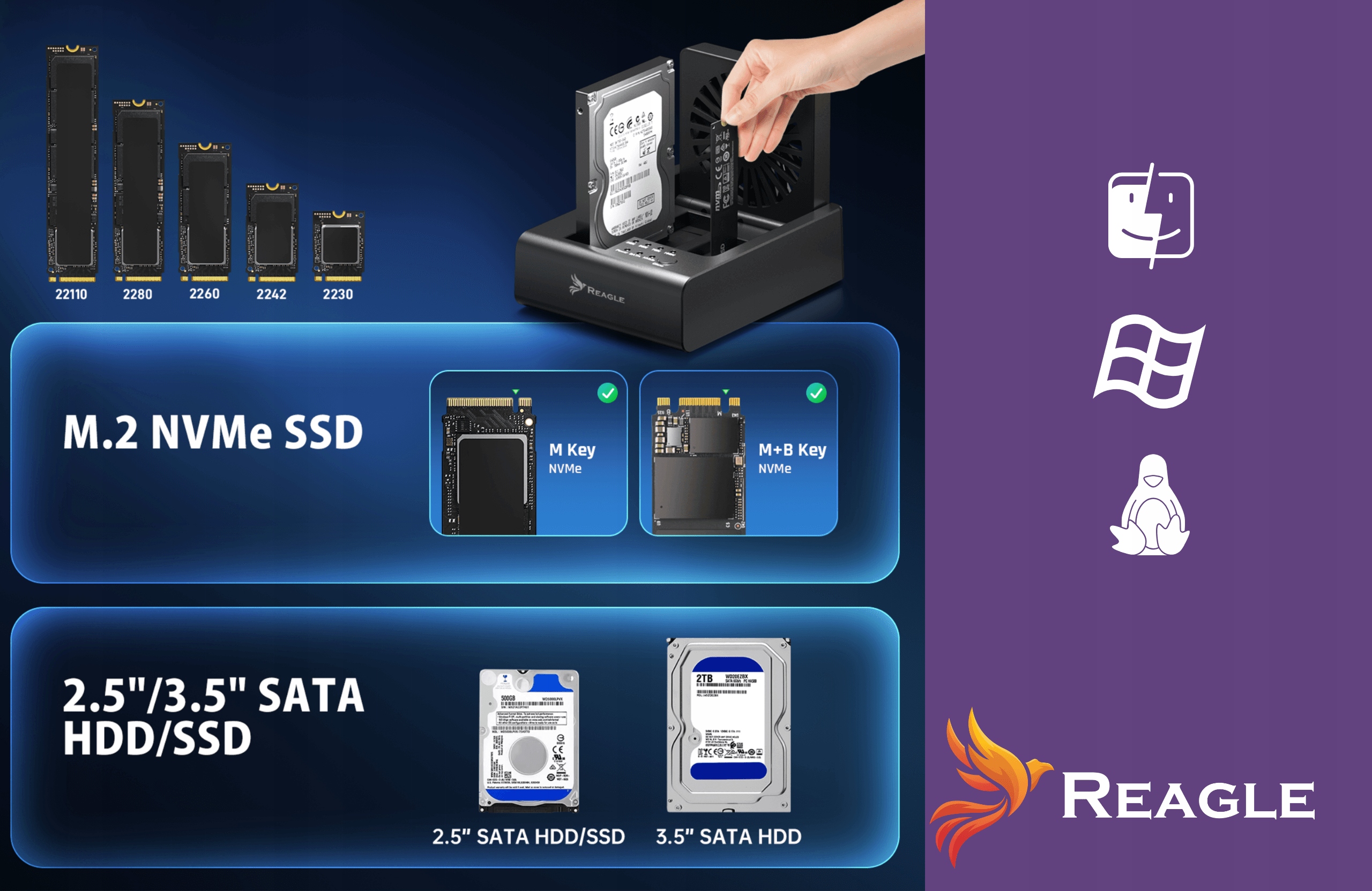 Станция клонирования дисков RDOC63 от Reagle — это универсальное устройство, поддерживающее 2,5-дюймовые и 3,5-дюймовые диски SATA, а также современные M.2 NVMe и M.2 SATA. Благодаря сверхбыстрому разъему USB 3.2 Gen2 со скоростью передачи данных до 10 Гбит/с и функции одновременной работы двух накопителей он хорошо подойдет в повседневной работе сервисного специалиста, домашнего пользователя или ИТ-специалиста. Больше никакого копирования данных при смене диска!!! Благодаря этой станции посекторный перенос всей системы с 2,5" диска на M.2 NVME занимает от 10-30 минут в зависимости от объёма данных.