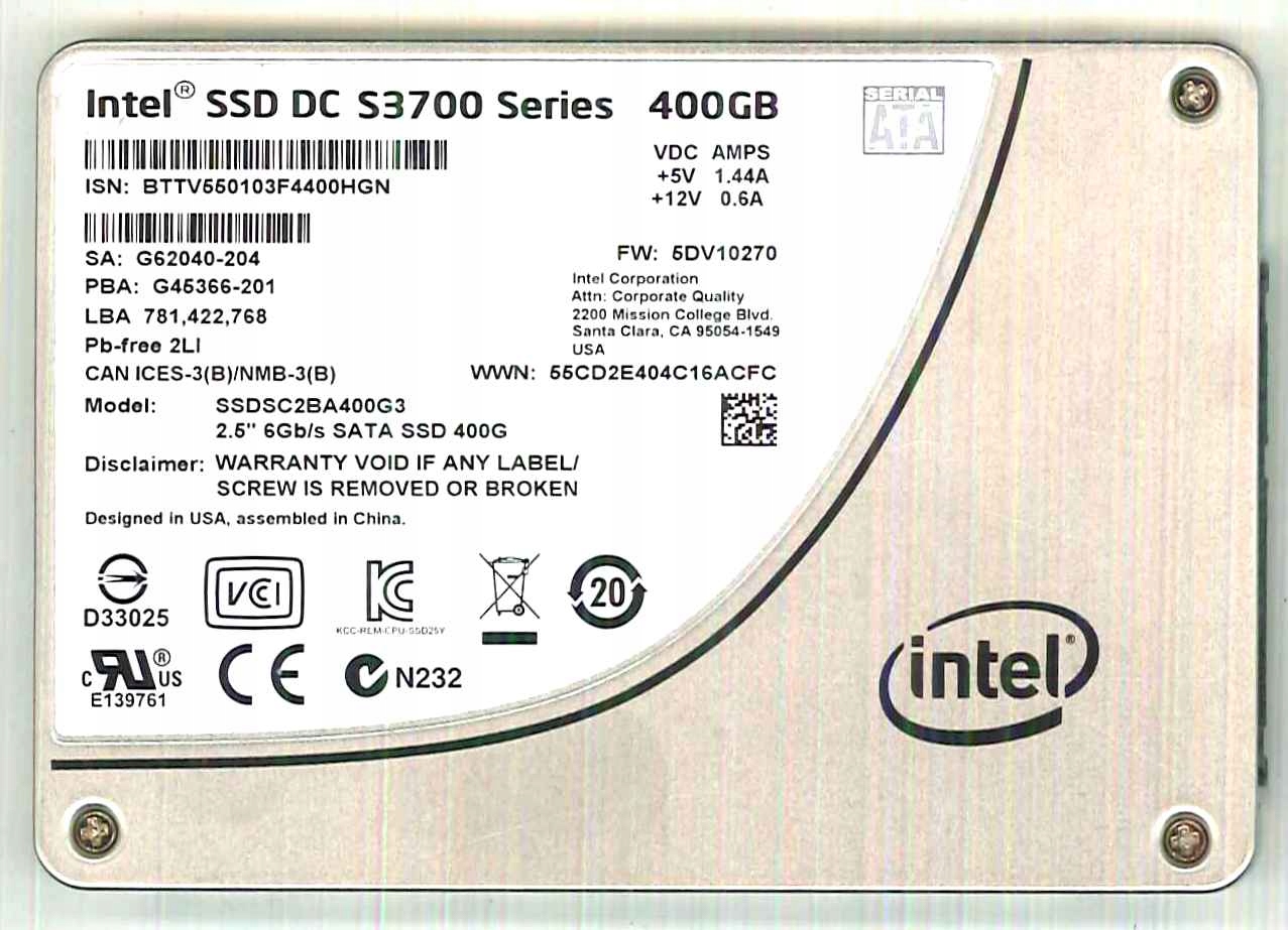 .:Твердотельный накопитель Intel HP DC S3700, 400 ГБ, SSDSC2BA400G3:.