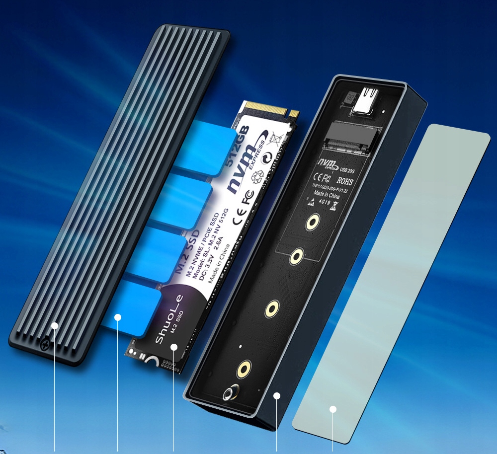 - Эффективное рассеяние тепла: металлический плавник - покрытый назад был разработан для быстрого рассеяния тепла, что продлевает срок службы жесткого диска. ☑