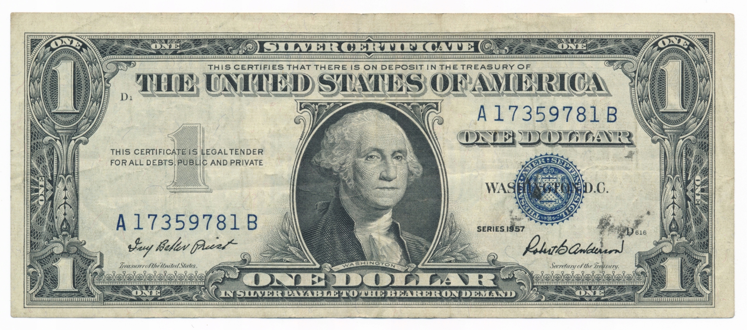 США, 1 долар 1957 р., срібний сертифікат, Priest-Anderson, клас 3/3+