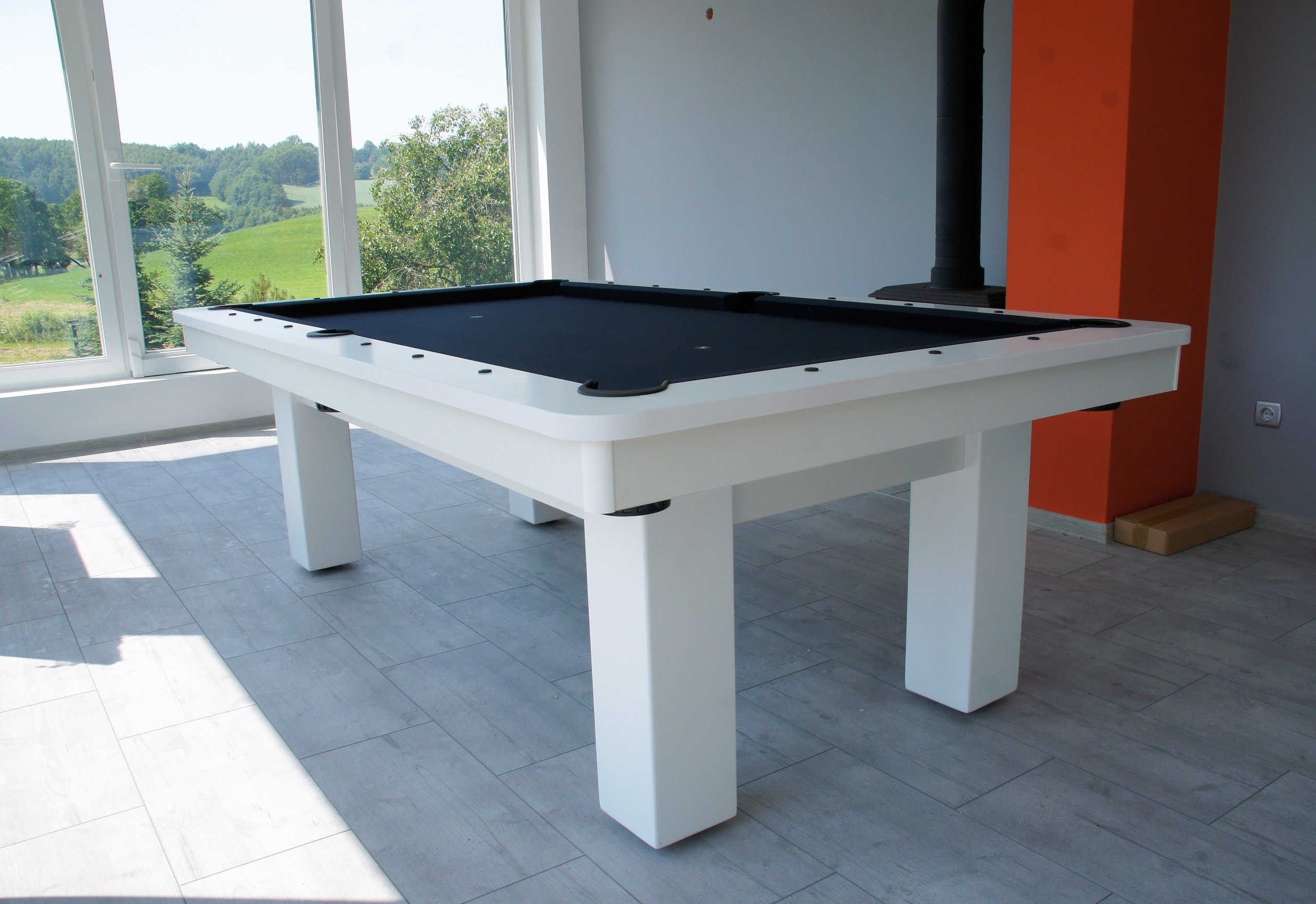 - Дизайн моделей столов, выпускаемых нашей компанией, тщательно продуман, поэтому чтобы клиент никоим образом не касался ног. Очертание стола. Мы гарантируем, что в сочетании с банкетной столешницей он создаст идеальный обеденный стол. Что касается нижней конструкции, то она отведена назад под венец, чтобы мы могли свободно сидеть и не касаться ногами нижней доски. Возможно, вы не видите этого на прилагаемых фотографиях предложения, но это то, что есть. Конструкция стола выпускается с 1995 года, поэтому с учетом нашего опыта и предложений клиентов она была тщательно усовершенствована и сделана так, чтобы идеально сочетать бильярдный и обеденный стол.