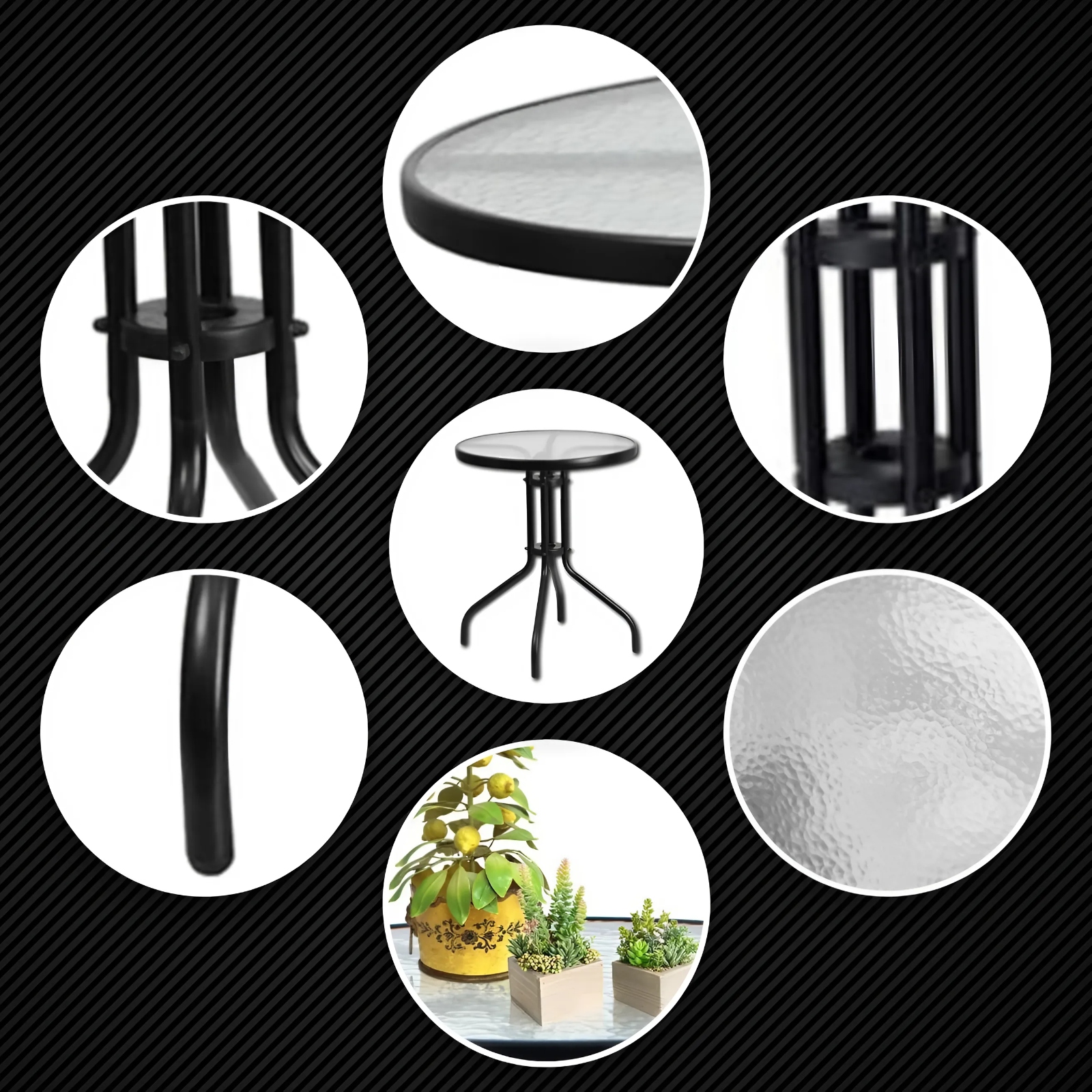 STÓŁ STOLIK BERGAMO OKRĄGŁY SZKLANY METAL OGRODOWY BALKON TARAS KAWOWY FI60