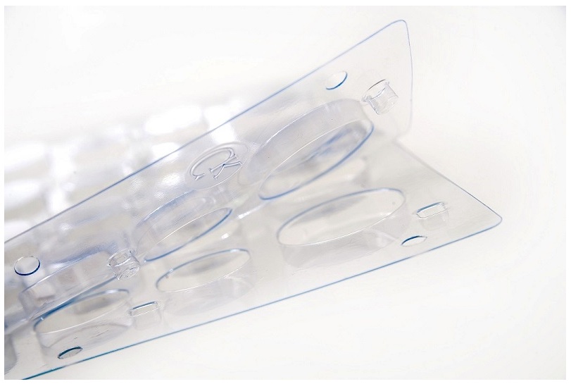 Стабилизирующие диски для складных карт изготовлены из прозрачного пластика толщиной 1 мм. В середине диска имеется круглое отверстие диаметром 10 мм, имеющее двойное назначение: оно служит для извлечения диска из кармашка для карт и в него можно поместить, например, глазок для пуговицы.