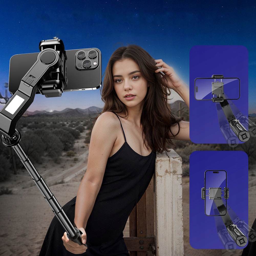 Многофункциональный кардан, который сочетает в себе стабилизатор, штатив, монопод с селфи и живое устройство передачи. Его компактный и легкий дизайн делает его идеальным партнером для повседневного использования и путешествий.