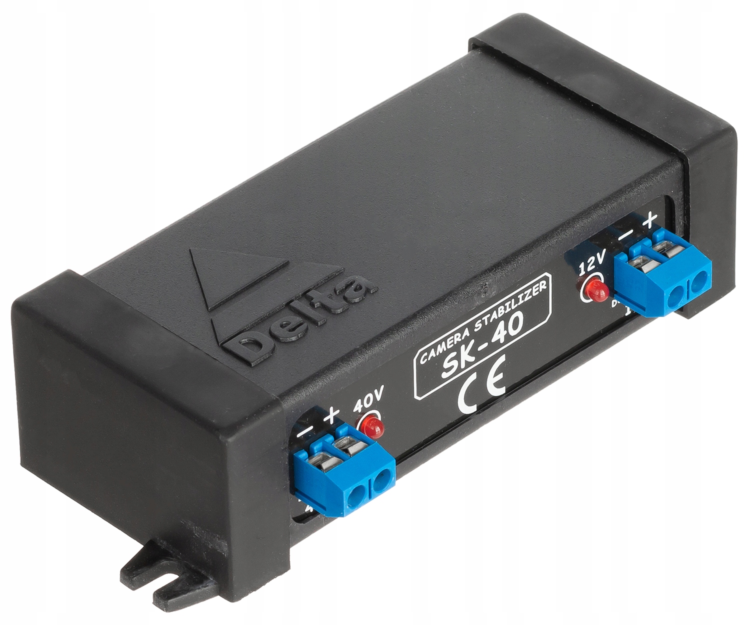 Стабилизатор камеры SK-40 предназначен для питания камеры или камеры с термостатом. SK-40 работает с источником питания ZK-40/16, который впускается в кабель постоянного напряжения, нестабилизированного вокруг DC 40V, который в устройстве SK-40 стабилизируется до значения DC 12V, что позволяет мощности камеры с термостатом. Представленное здесь силовое решение компенсирует падения напряжения на кабеле и позволяет камерам снабжать камеры до нескольких сотен метров.