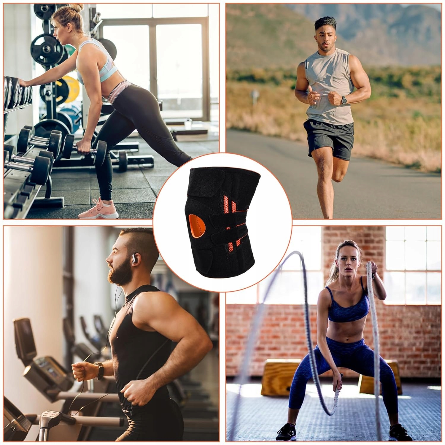 - Эффективная поддержка и защита: регулируемые наколенники состоят из 4 опорных полос из смолы и стали, которые могут распределять давление на мениск, эффективно поддерживая колени.