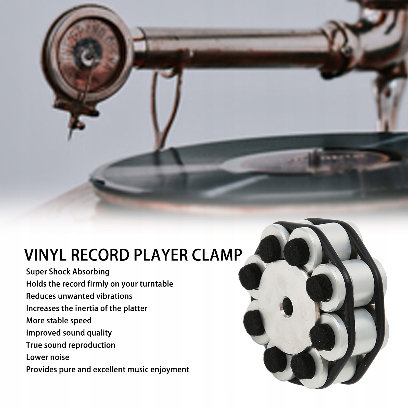 1. Уменьшите вибрацию: алюминиевый стабилизатор проигрывателя надежно удерживает пластинку на проигрывателе, уменьшая нежелательные вибрации, передаваемые на иглу, и увеличивая инерцию диска для достижения более стабильной скорости.