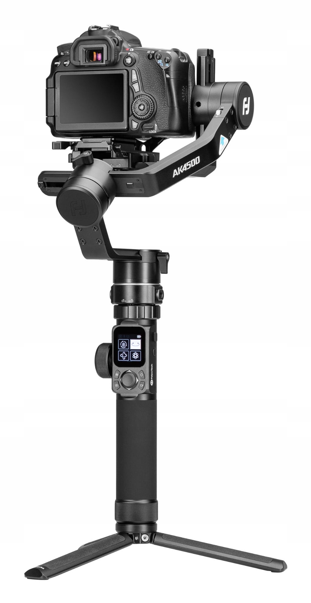 Высокая грузоподъемность 4,6 кг и увеличенная монтажная поверхность позволяют устанавливать полностью профессиональные фотоаппараты и VDSLR-камеры. Рукоятки AK4500 предназначены для обеспечения свободного перемещения записывающих устройств в сочетании с широким спектром объективов. Универсальность устройства также обеспечивается благодаря его низкой минимальной нагрузке (всего 150 г), что также позволяет прикреплять небольшие камеры, такие как беззеркальные камеры и компактные камеры. Двигатель оси вращения расположен под углом, чтобы обеспечить легкий доступ к дисплею камеры в любое время.