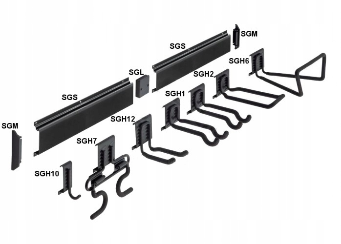 На каждом крючке имеется специальный крючок, позволяющий быстро собирать и разбирать. Чтобы удлинить его, вы можете соединить его с помощью разъема SGL и отделать края крышками SGM. Вешалки также доступны в нашем предложении. Они изготовлены из стали, а элементы, непосредственно соприкасающиеся с подвешенными предметами, покрыты резиновым покрытием, защищающим от царапин. Доступные размеры и формы вешалок позволяют удобно хранить множество инструментов и оборудования таким образом, чтобы обеспечить к ним быстрый доступ. Все элементы системы ГОЛИАТ доступны в наших продажах.