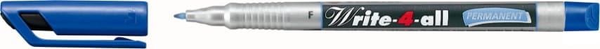STABILO Write-4-all — перманентный маркер для письма практически на любой поверхности. Идеально подходит для письма на стекле, керамике, пластике, металле и многих других поверхностях. Имеет быстросохнущие чернила на спиртовой основе без запаха. Он устойчив к размазыванию и выцветанию. Имеет прочный кончик, устойчивый к расслоению. Доступен в версиях с толщиной наконечника: 0,4 мм, 0,7 мм, 1 мм.