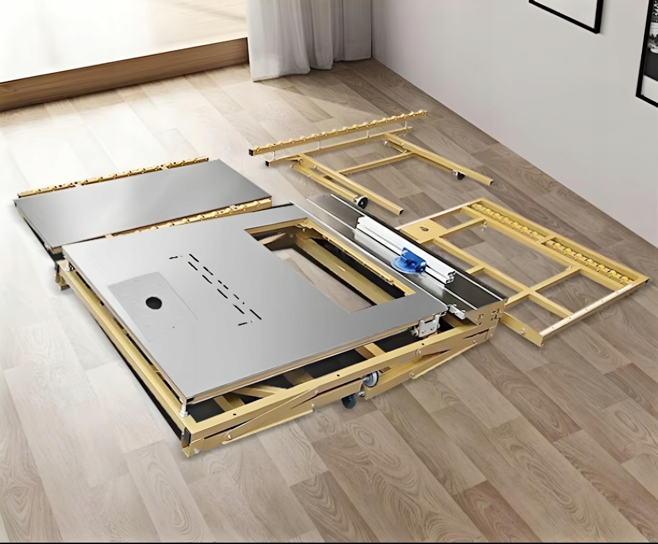 Данный стол является несущим элементом компактного мобильного режущего устройства, прекрасно подходит для использования в мебельном производстве, даже если это не профессиональное оборудование.