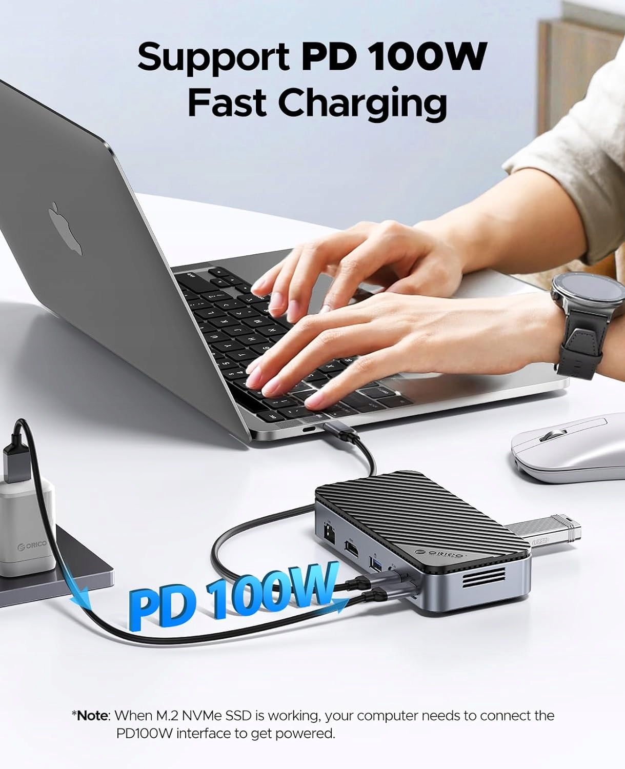 Док-станция ORICO 10 в 1 USB C, концентратор ORICO USB-C, адаптер SSD USB 3.2 Gen2 M.2 NVMe/SATA 10 Гбит/с, совместимый с SSD M2, корпус поддерживает 4K HDMI, PD 100 Вт, SD/TF, / h1>