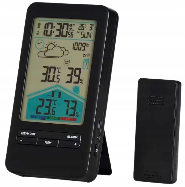 STACJA POGODOWA BEZPRZEWODOWA NORTEC HIGROMETR LCD ŁADOWANA ALARM KALENDARZ