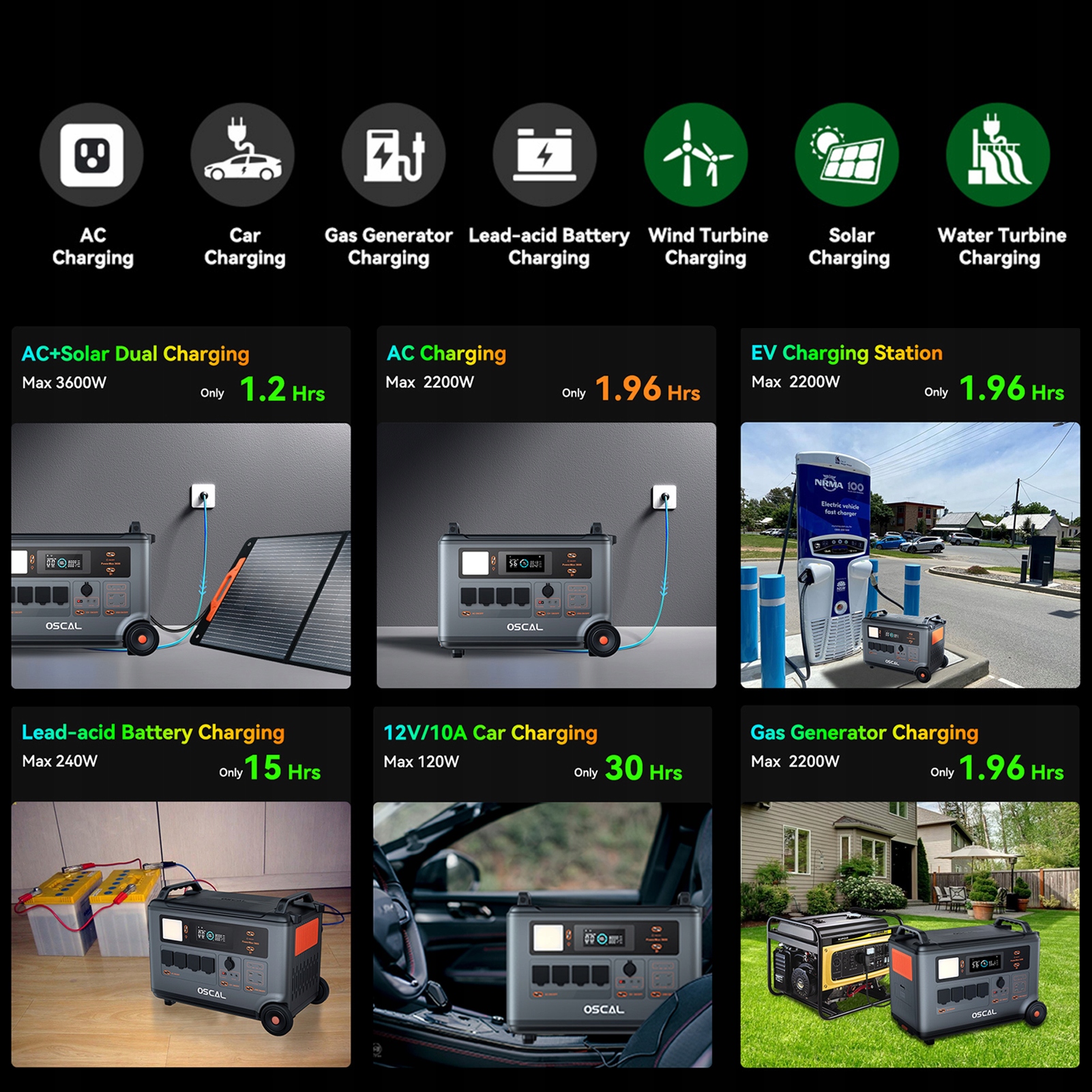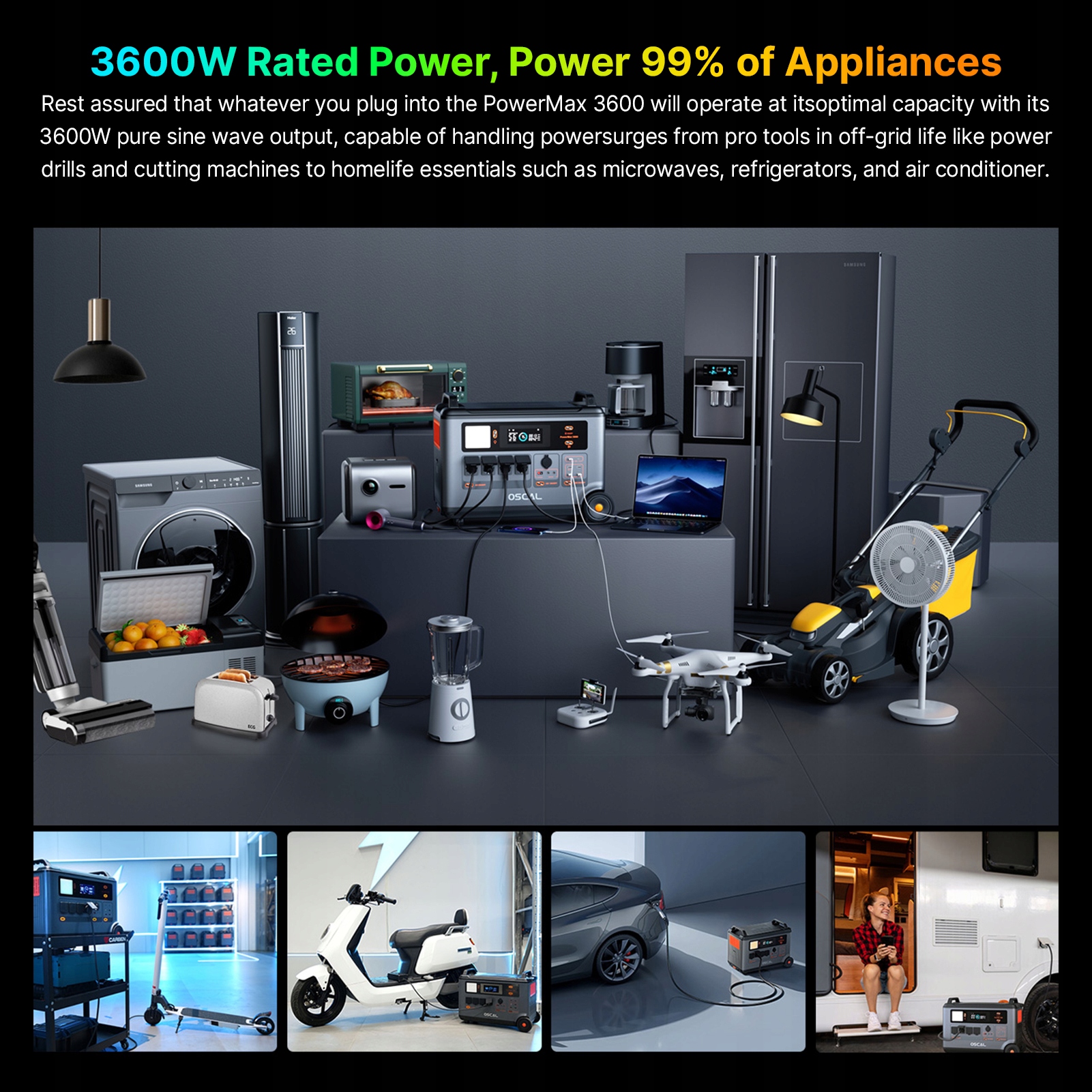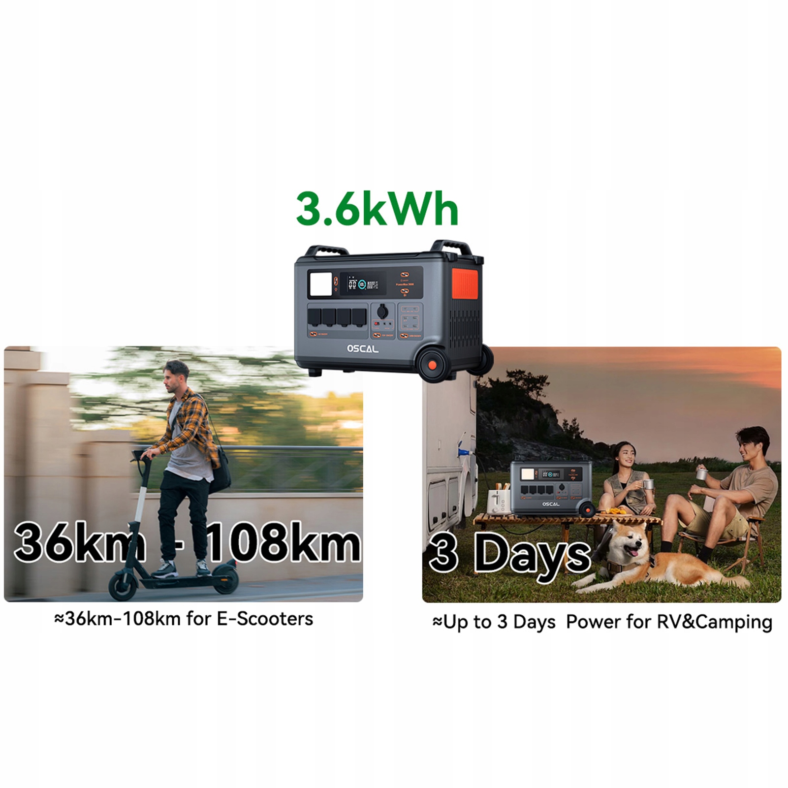 STACJA ZASILANIA 3600W 3600Wh GENERATOR LiFePO4 UPS LED Oscal PowerMax 3600