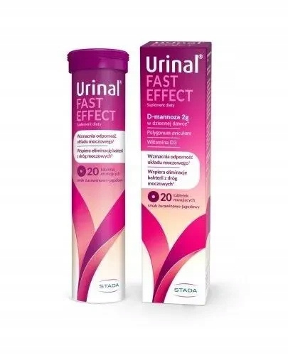Stada Urinal Fast Effect – это биологически активная добавка в форме шипучих таблеток, которая содержит: d-маннозу, экстракт спорыша и витамин D3. Препарат предназначен для взрослых.