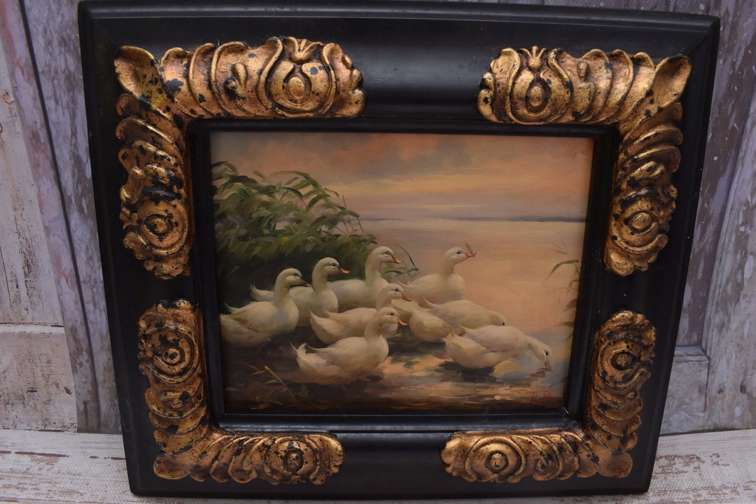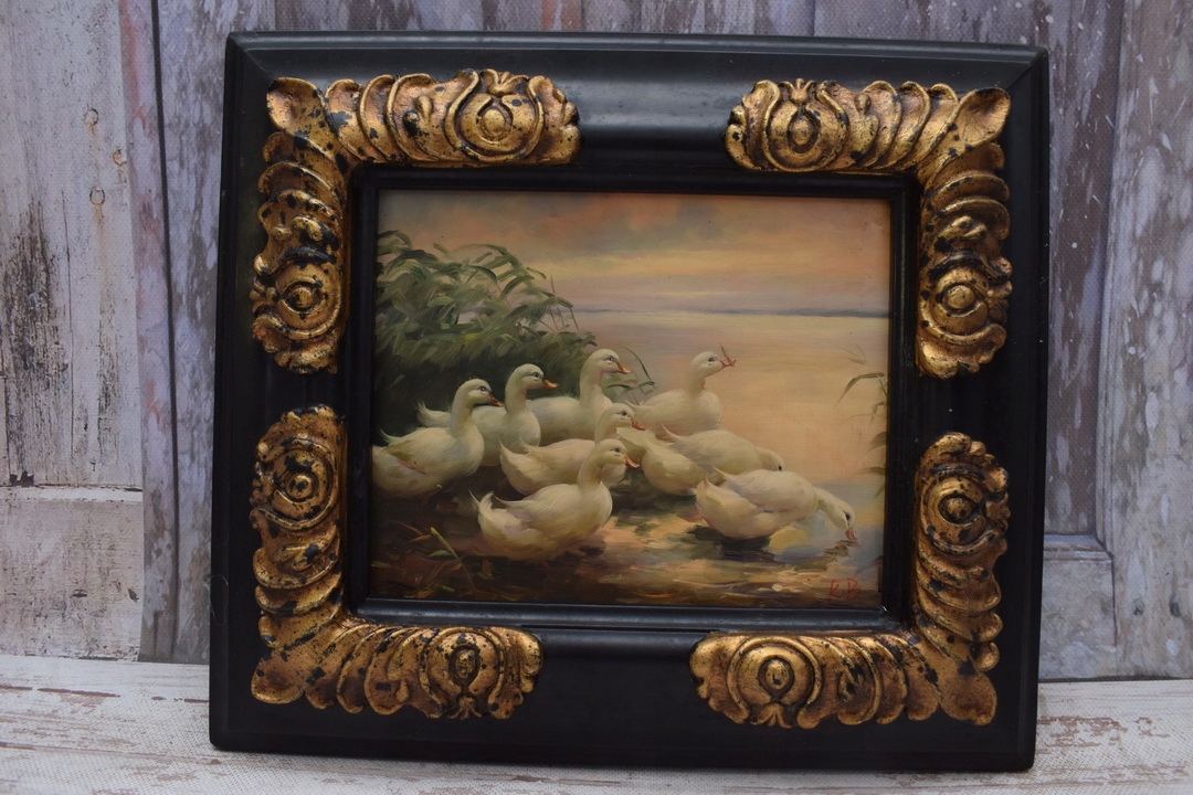 Стадо диких гусей - гуска - картина маслом - чорно-золота рамка