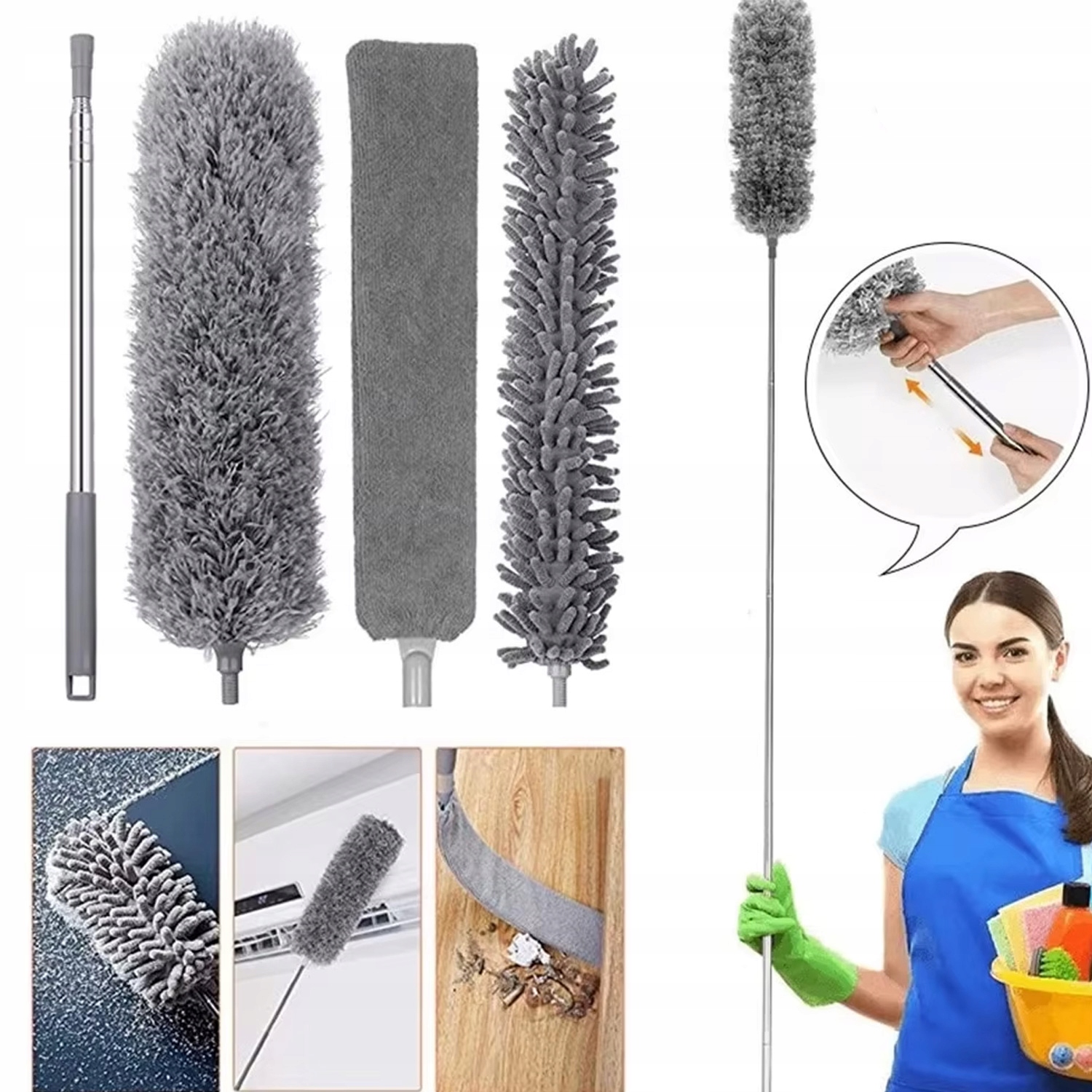 Независимо от того, чистите ли вы свой дом, офис или автомобиль, набор универсальных, телескопических метл микрофибры станет вашим незаменимым полузащитником. Благодаря этой метле вы сэкономите время и ограничиваете аксессуары для одного универсала, и ваши интерьеры будут сиять от чистоты. Закажите сегодня и посмотрите, насколько легкой может быть чистка!