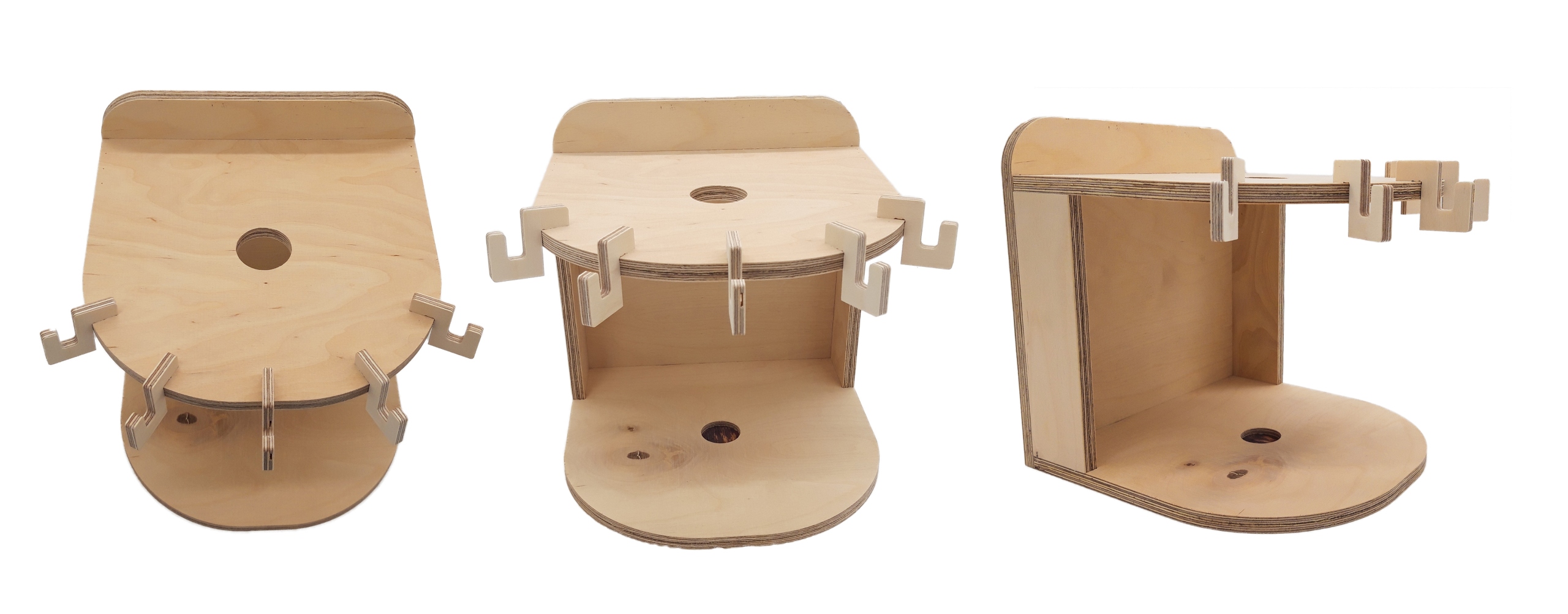 - На высоте верхнего отверстия расположены 5 крючков для подвешивания аксессуаров – каждый крючок можно снять, крючки деревянные и надежно закруглены;