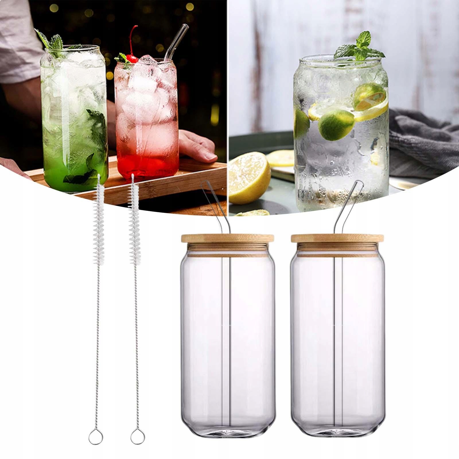 Стакан для питья с бамбуковой крышкой и стеклянными трубочками, чашки со льдом, 500 мл