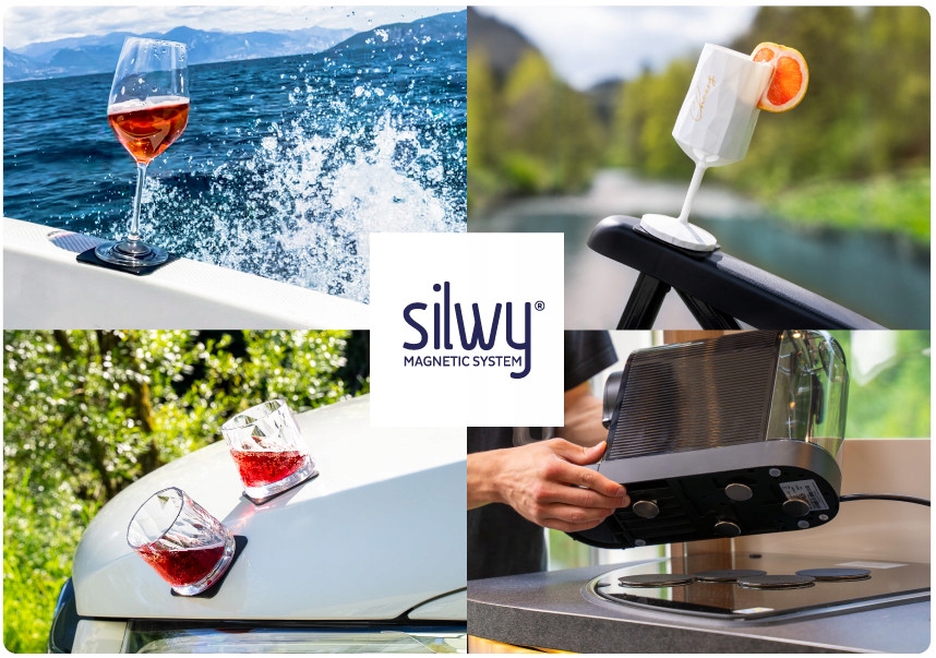 Идеально изготовленные магниты встроены в нижнюю часть коллекции посуды. Магнитная посуда находит своего металлического аналога в виде гибких наногелевых подушечек или других аксессуаров Silwy®. Наногелевые подушечки гарантируют безопасное положение во время езды, их можно стирать и использовать повторно. Еще одним преимуществом является возможность хранить очки в перевернутом виде. Во время движения все остается на месте.