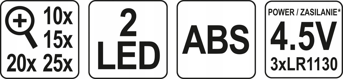 - В комплекте 4 пары сменных луп: 10x, 15x, 20x, 25x li>