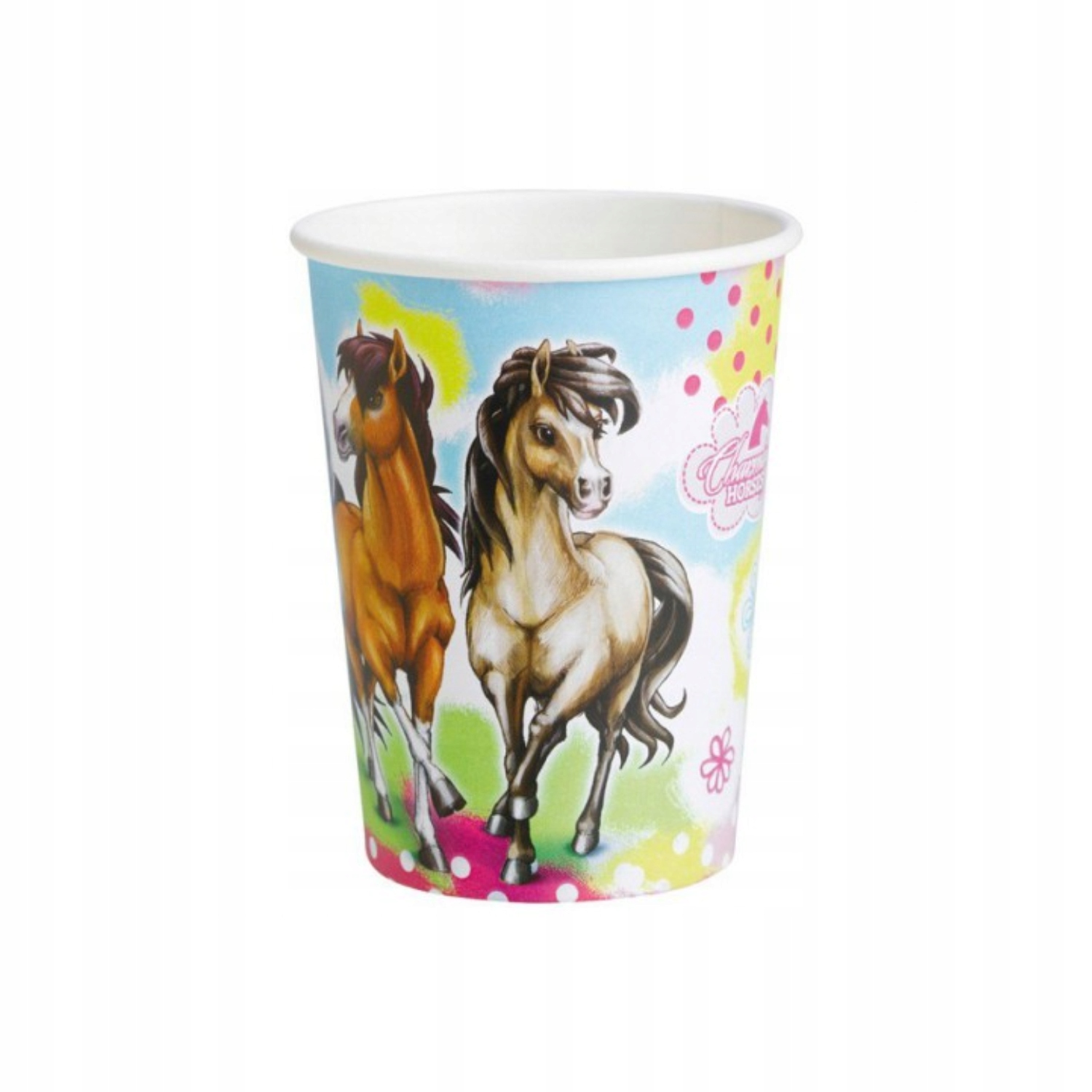Одноразовые бумажные стаканчики на день рождения «Лошади» емкостью 250 мл. Вместе с другими аксессуарами из серии - такими как шапки, скатерти, тарелки, соломинки, трубы, воздушные шары - они создадут уникальную обстановку для дня рождения вашего малыша.