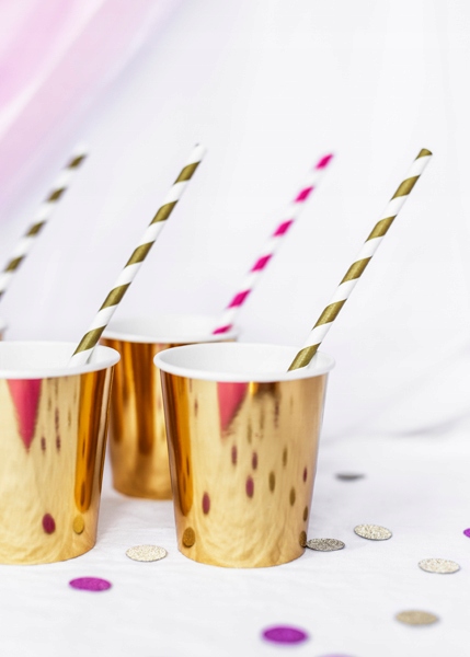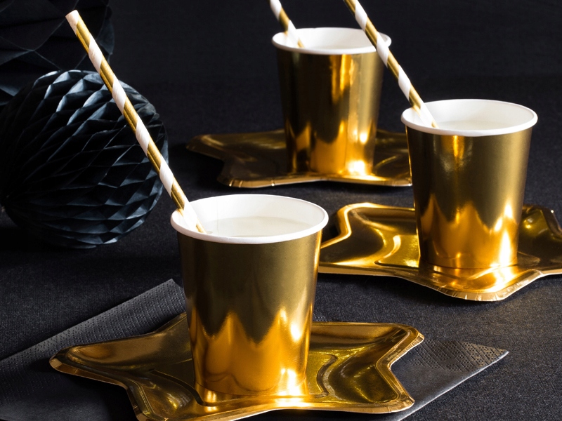 Золотые бумажные стаканчики, 180 мл, 6 шт, день рождения