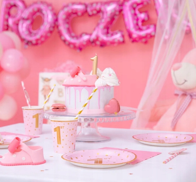 Бумажные стаканчики на день рождения Торт из розового золота годовалого возраста, 6 шт.