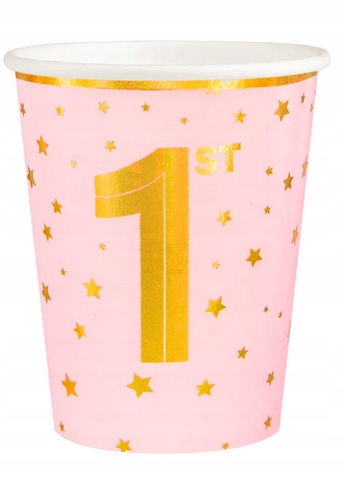 БУМАЖНЫЕ Стаканчики «День Рождения» Торт «Розовое золото» в возрасте 1 год, 6 шт.
