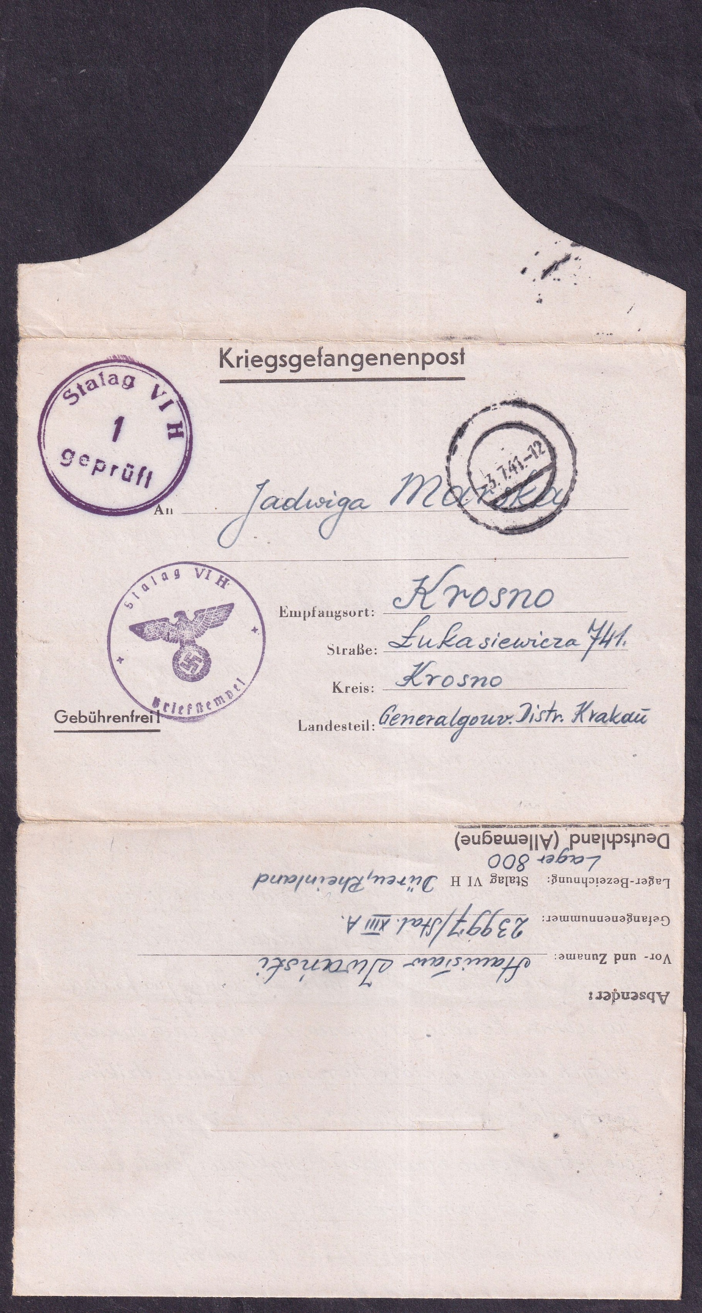 Сталаг Vi H Arnoldsweiler Disteror отправлен из лагеря в Кросно 1941 (156)
