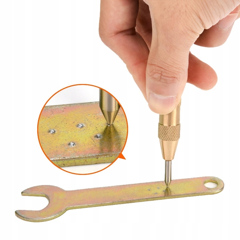 - ▶ ️ точечная работа на основе резкого конца иглы в материале. Традиционный метод использует молоток, но автоматическая точка устраняет эту потребность. Благодаря встроенной внутренней пружине инструмент автоматически перемещает сталь, закаленный шпиль, который позволяет удобную и быстрое маркировку точки