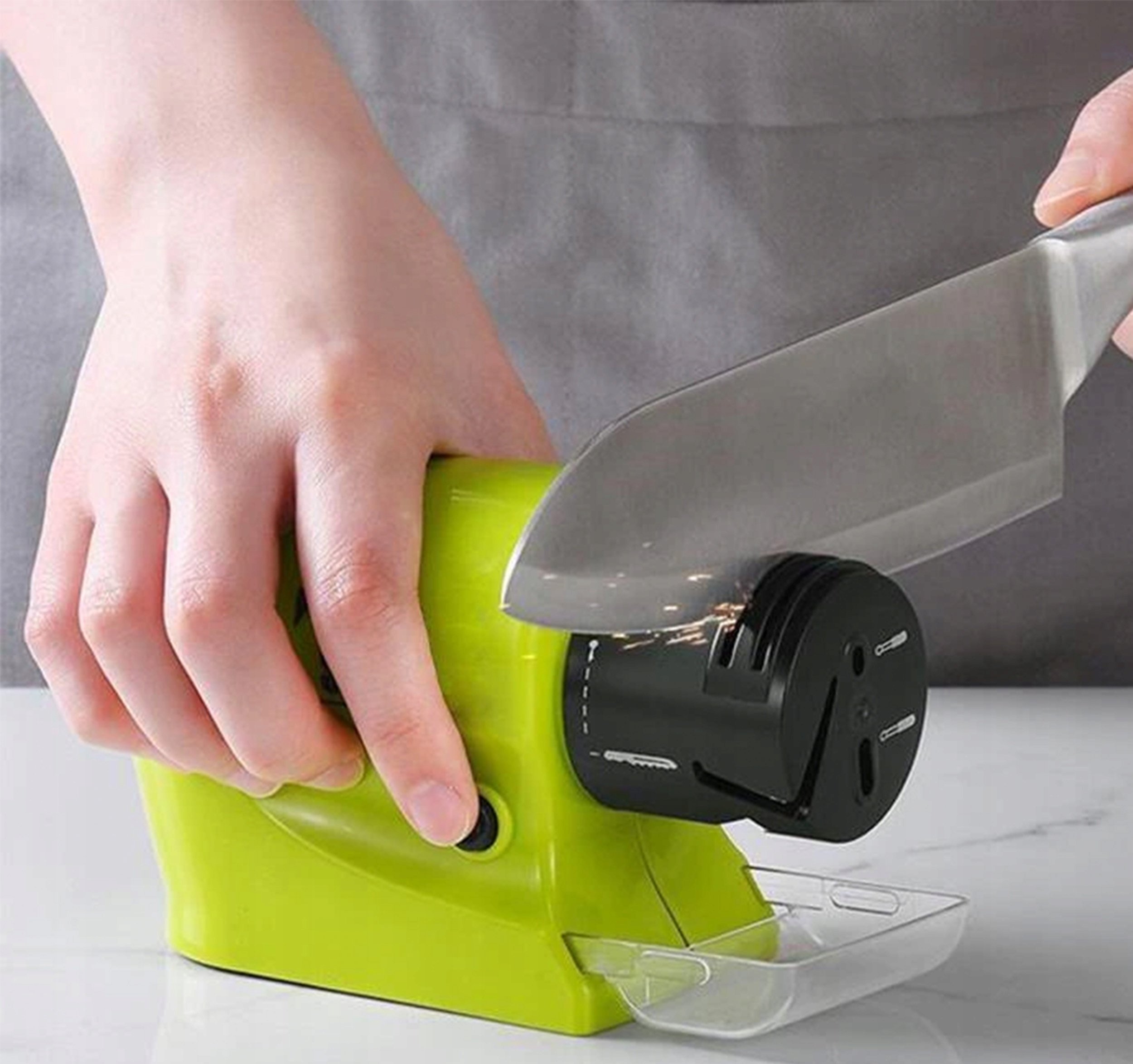 Если вам надоело пользоваться тупым ножом, воспользуйтесь электрической точилкой в несколько секунд позволят вам без особых усилий заточить практически любой тупой нож. Просто включите прибор, поднесите острие ножа к головке точилки, и через несколько секунд лезвие ножа будет таким же хорошим как новый. Но это еще не все! Точилка позволит заточить не только ножи, но также ножницы и отвертки.