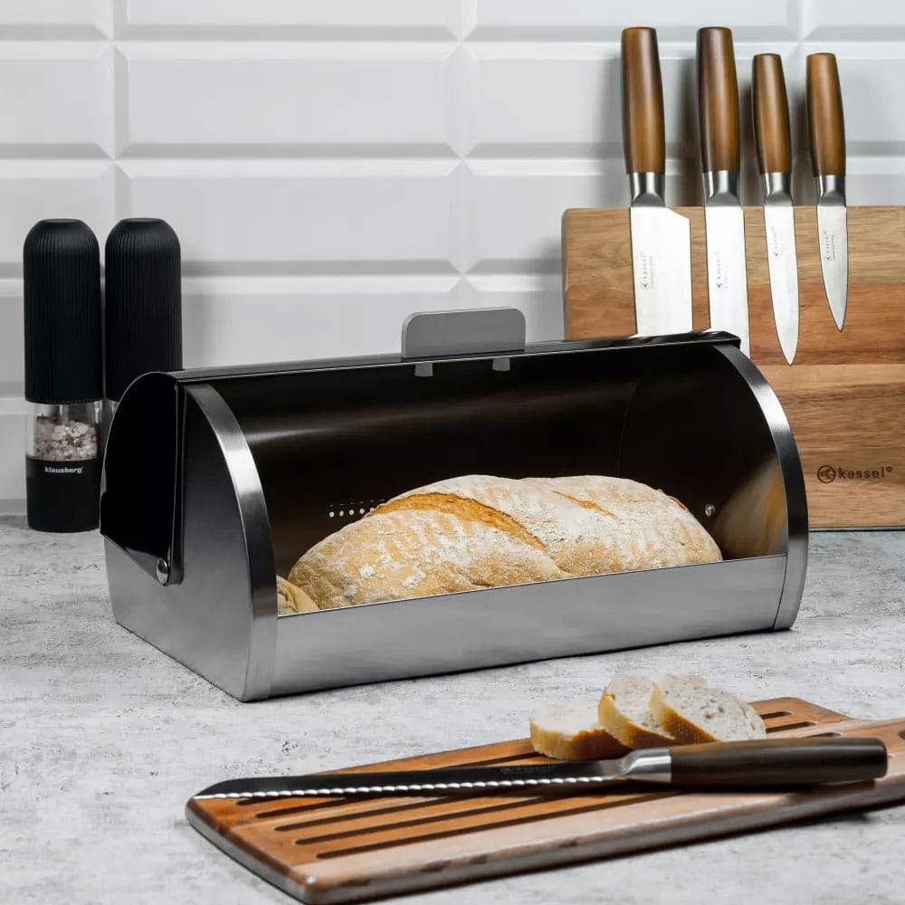 Стальная хлебница KINGHOFF с черной акриловой крышкой