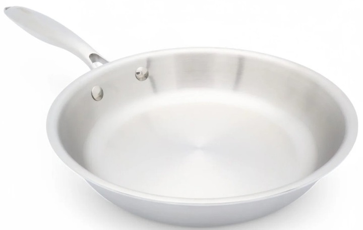 - Трехслойное тело соединяет нержавеющую сталь со слоем алюминия, который обеспечивает превосходную проводимость и распределение тепла без горячих точек.