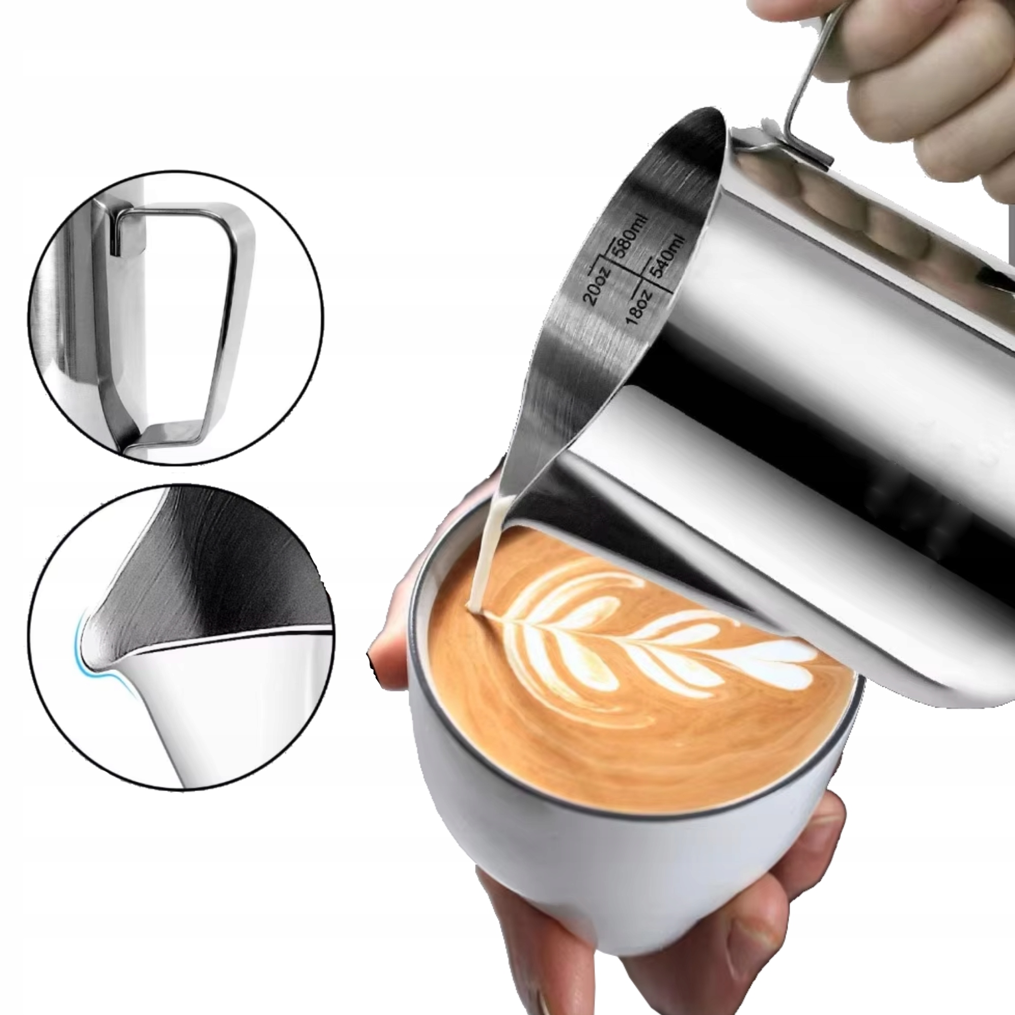 Кувшин для вспенивания молока > незаменимый инструмент в арсенале каждого бариста и любителя кофе, сочетающий в себе функциональность и элегантный дизайн. С ним проще готовить идеальную молочную пенку, поднимая качество домашних и профессиональных кофейных напитков на более высокий уровень.