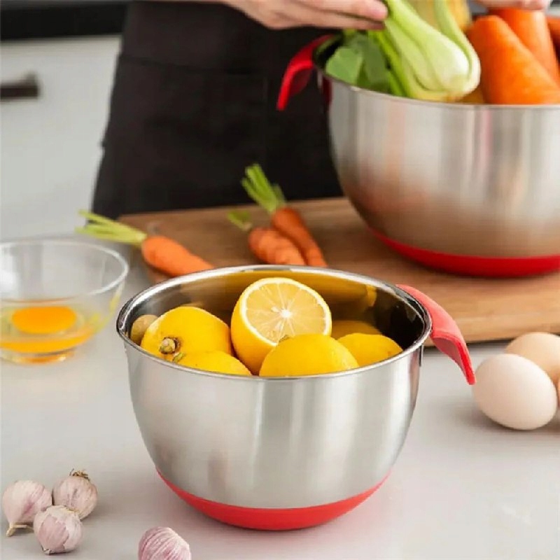 ЧАША КУХОННАЯ СТАЛЬНАЯ 2,5 Л, НЕСКОЛЬЗЯЩАЯ С РУЧКОЙ И МЕРКОЙ