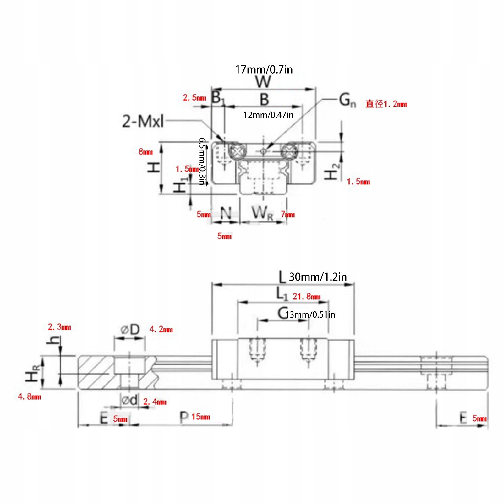 Размер установочного винта направляющей: M2x6
