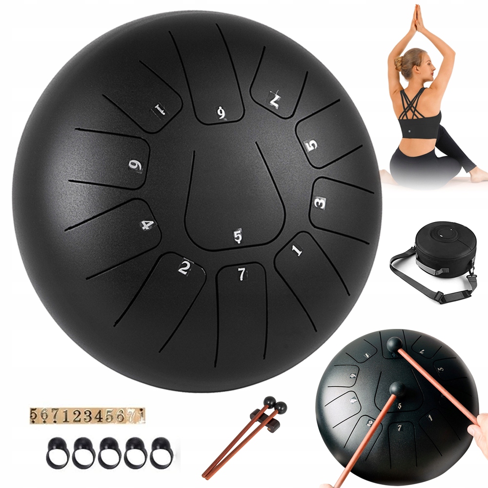 ✅ Bogate аксессуары: Комплексные покупки для всех ваших потребностей. Весь набор барабанов включает в себя стальной барабан, транспортный пакет, корпус для 6 пальцев, 2 барабанных палочки, ноутбук и 2 наклейки с числами шлифов