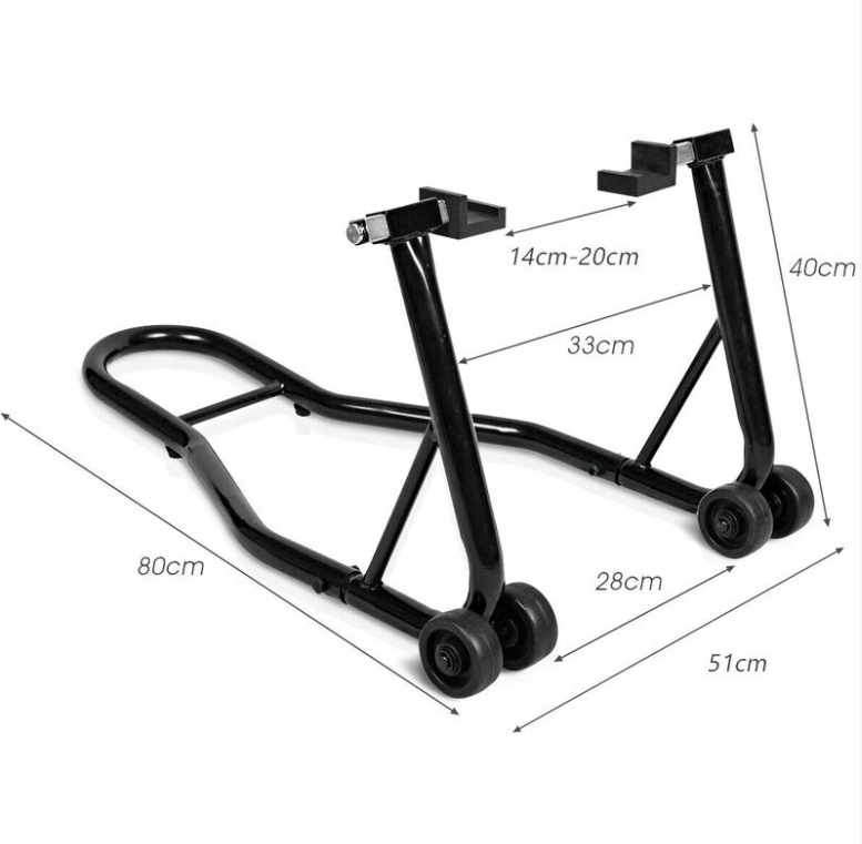 Рамка для брызги обеспечивает высокую прочность и сопротивление ржавчине. Более того, он имеет адаптированную ширину от 14 до 20 см, чтобы соответствовать различным мотоциклам, таким как Yamaha, Honda, Kawasaki, Suzuki и так далее. Мотоциклевая подставка внизу имеет 4 колеса для облегчения движения, а не скользящие прокладки обеспечивают защиту пола. Кроме того, заднее спортивное велосипедное колесо является легким, что позволяет использовать во многих сценах и компактно, что облегчает хранение. Наконец, его установка очень проста под руководством подробных инструкций.