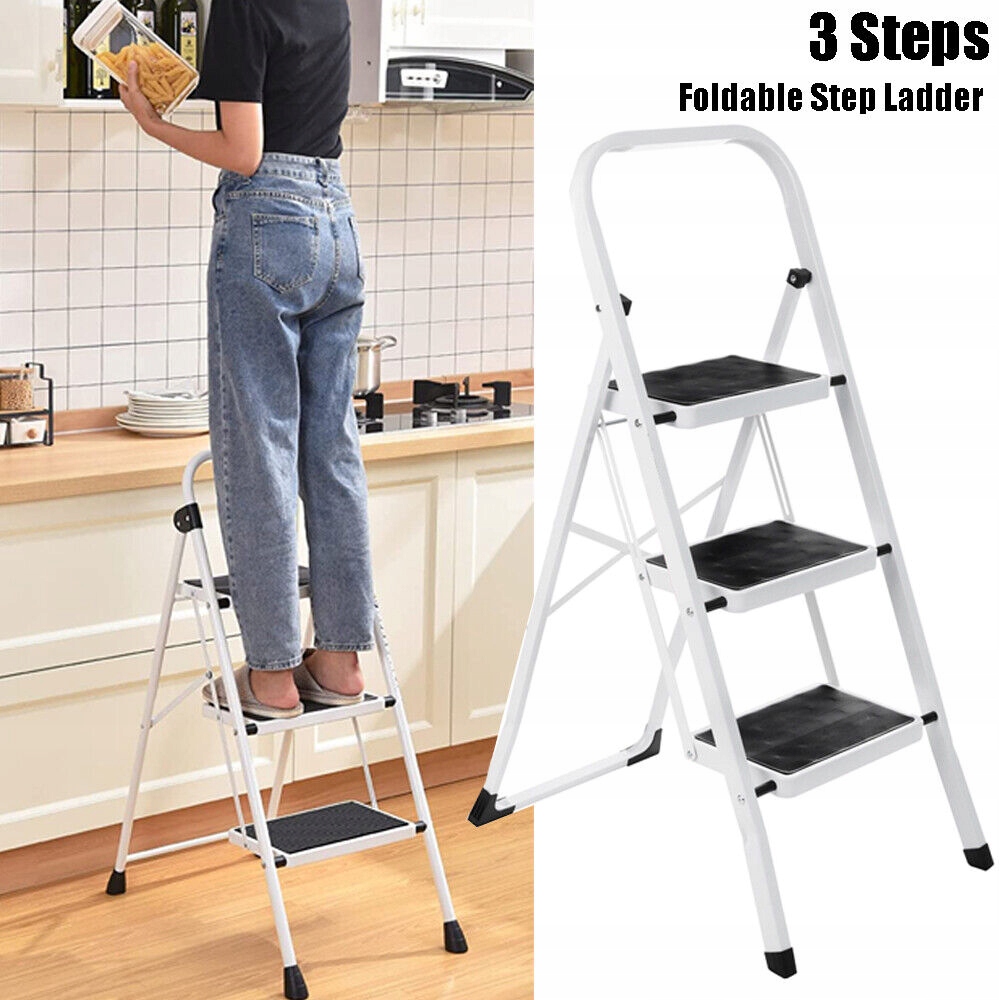 Сталева портативна складна 3-ступенева драбина з широкою педаллю проти ковзання для дому, кухні