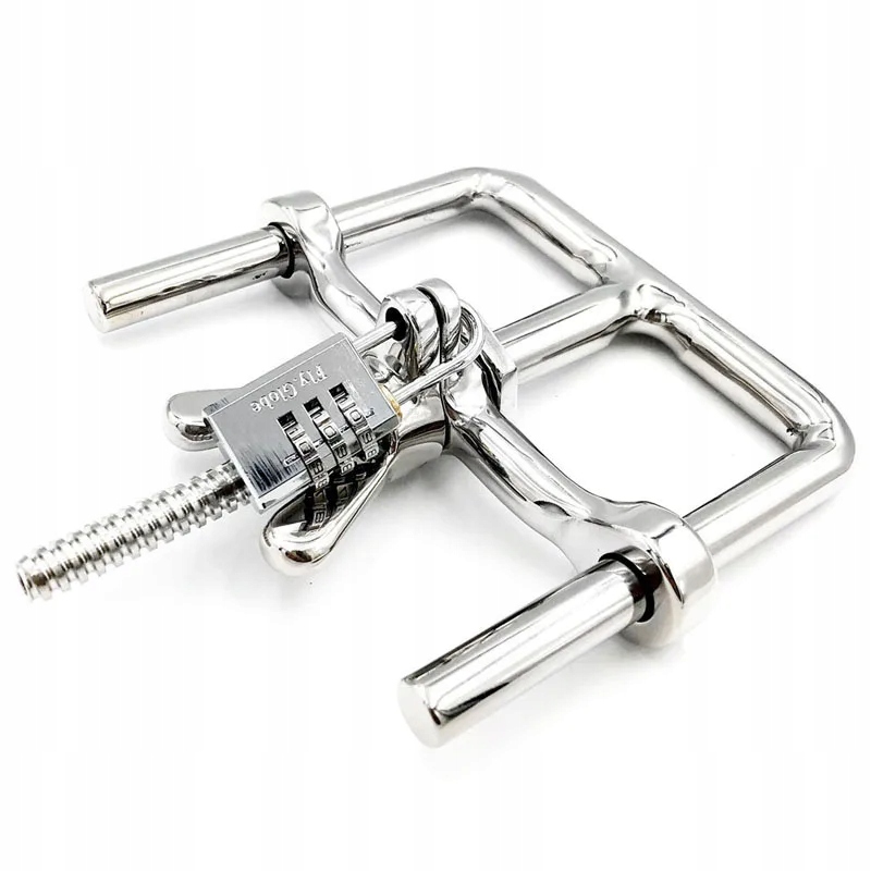 Прочные наручники из стали, изготовленные из стали, оснащенные защитой шифром (числовой палблок) -отличный выбор для вентиляторов BDSM и управления фетишем. Регулируемый размер позволяет вам соответствовать как запястьям, так и кубикам, что делает их универсальным инструментом для сдерживания. Их массивный внешний вид и холод металла усиливают впечатления подчинения и доминирования.