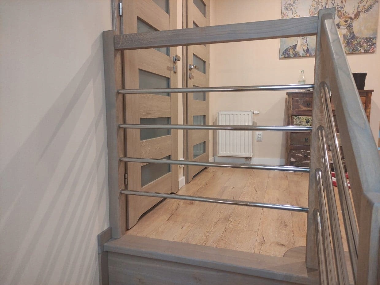 ДУБОВЫЕ ПЕРИЛА, ВНУТРЕННЯЯ БАЛЮСТРАДА, СТАЛЬНЫЕ ТРУБЫ