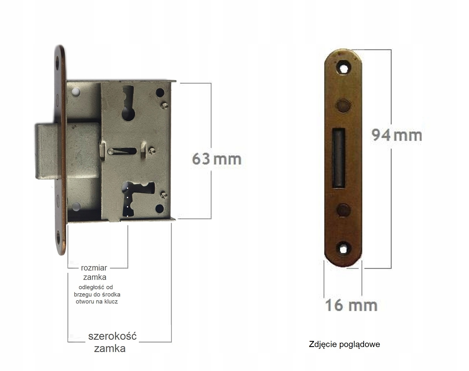 - Размер 55 мм - расстояние от края замка до центра отверстия