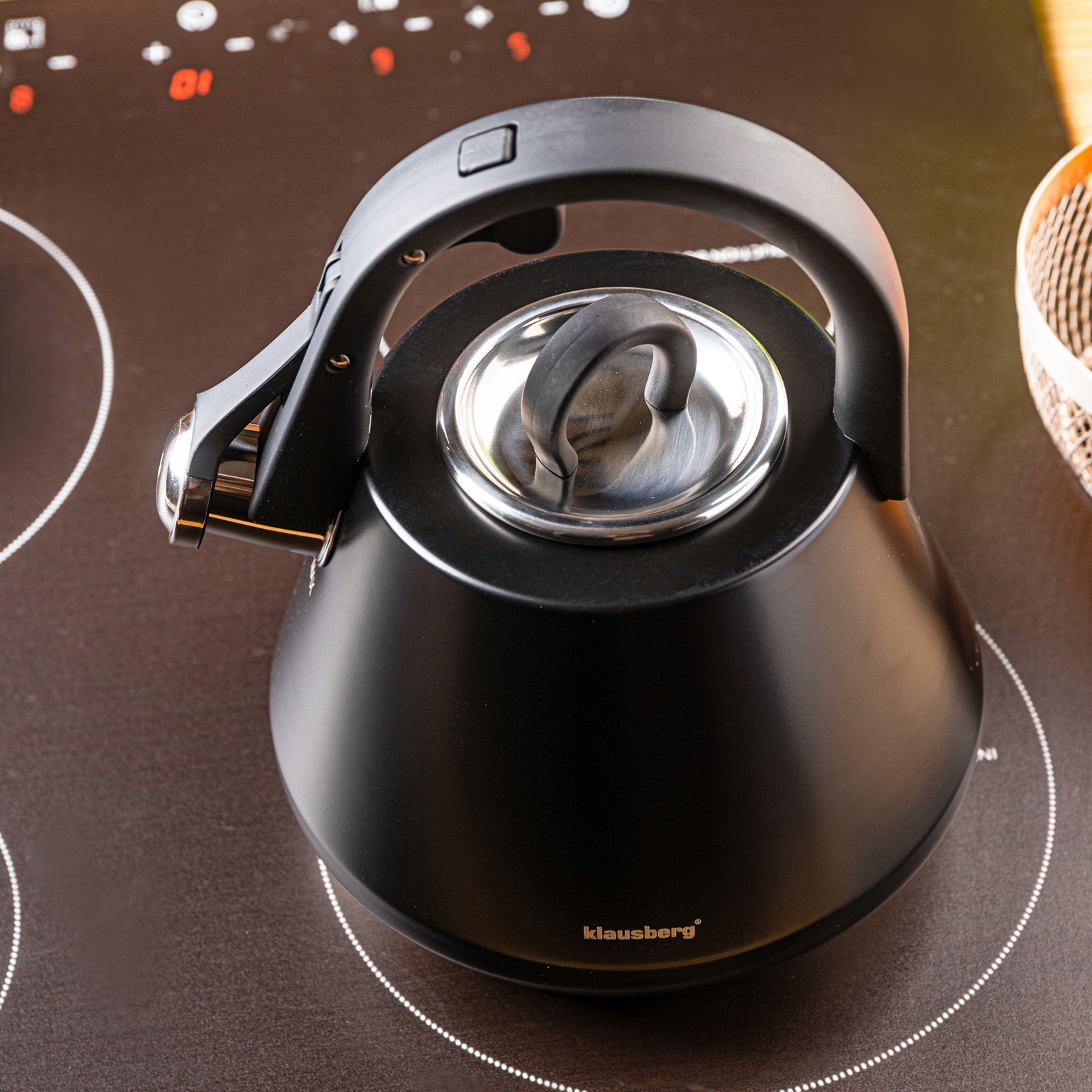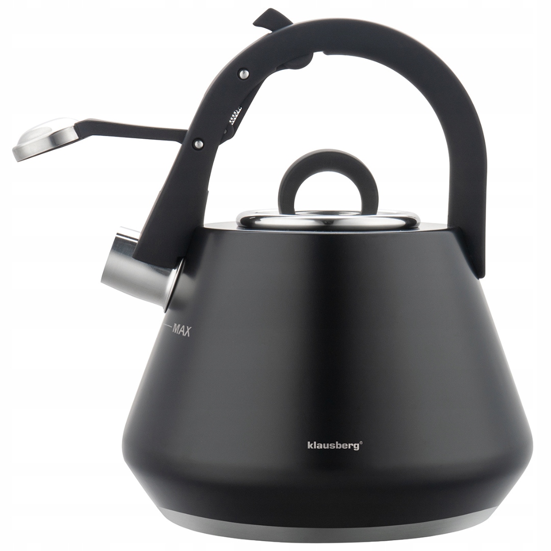 Чайник стальной со свистком, матовый ЧЕРНЫЙ KLAUSBERG KB-7948, 2,5 л, индукционный газ