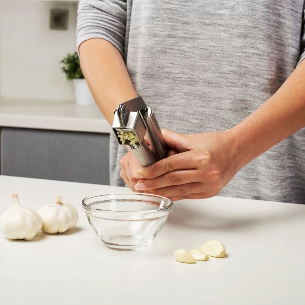 Соковыжималка из чеснока, полностью изготовленная из высококачественной нержавеющей стали. Благодаря этому мы будем быстро и эффективно сжать гвоздику чеснока.