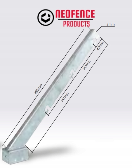 Одиночный косой бум, используется для установки колючей или огненной проволоки в трех рядах. Эти бумы также могут быть использованы для прикрепления растягивающего провода для концертины.