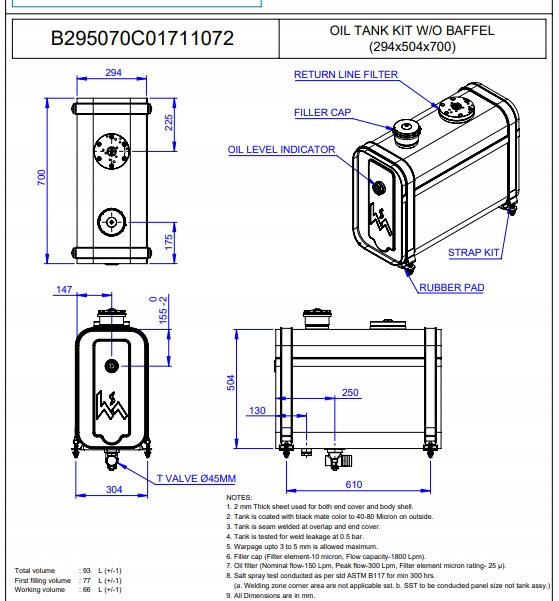 Стальной бак продается в комплекте с: воздушным фильтром, лентами, резинками для лент и резинками для опор, видимых на фотографиях.