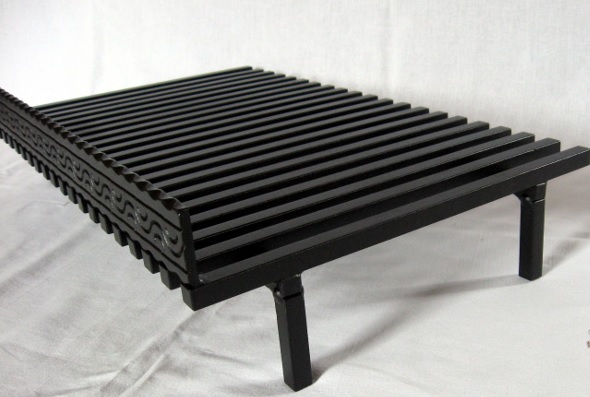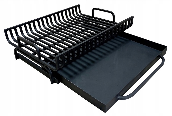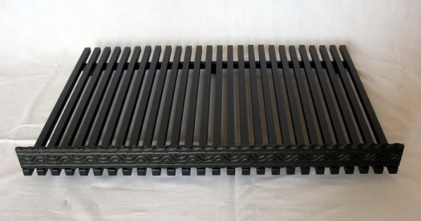 Это традиционная стальная каминная решетка, изготовленная из продольных прутьев. Благодаря большому расстоянию между прутьями обеспечивает идеальную тягу в камине и облегчает ссыпание золы в зольник.