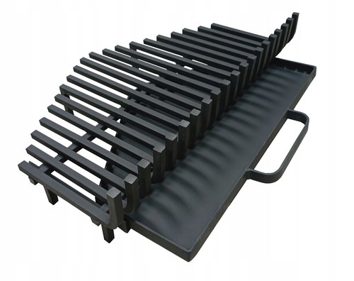 Это традиционная стальная каминная решетка, изготовленная из продольных прутьев. Благодаря большому расстоянию между прутьями обеспечивает идеальную тягу в камине и облегчает ссыпание золы в зольник.