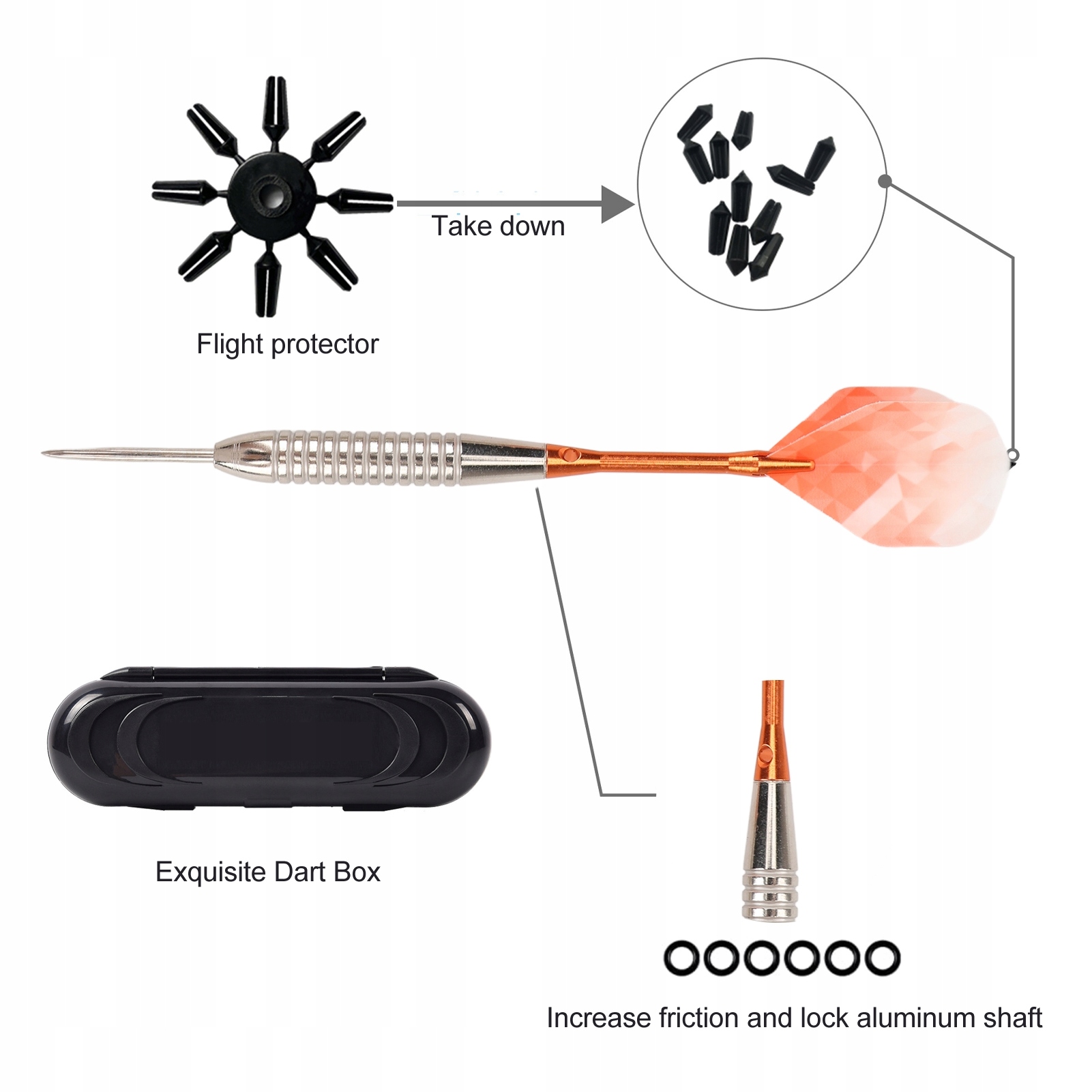 2. Прочный материал: набор стрел изготовлен из стали и алюминиевого материала, что означает, что набор дротиков может выдерживать длительное использование и частые броски без легкого урона.